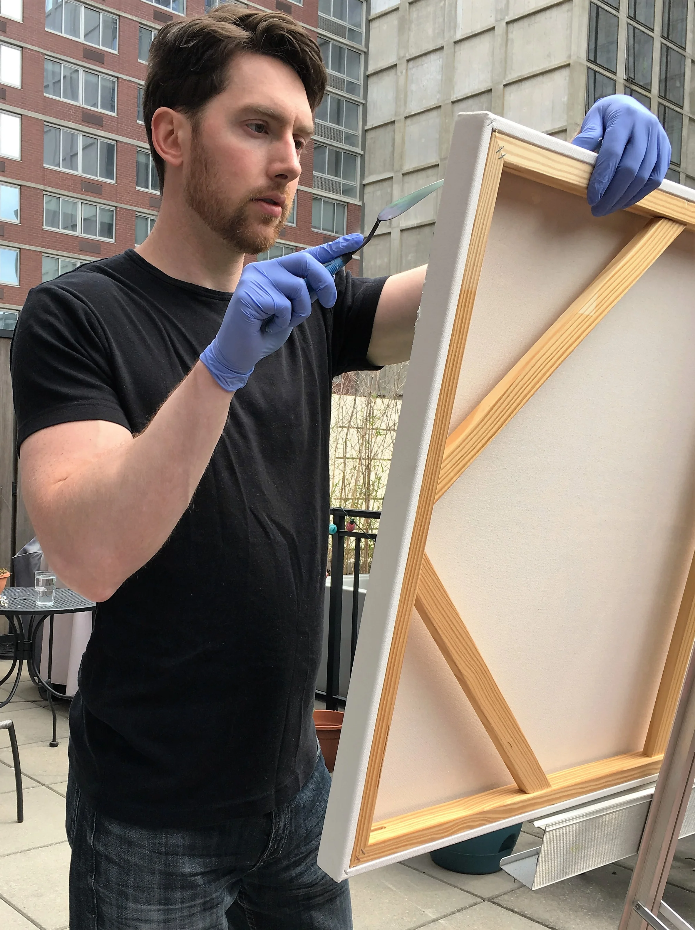 Justin Brown is a painter and mixed media artist based in New York City. His work focuses on juxtaposition of color, depth, and texture. Within his abstracts, paint is often added and subtracted simultaneously using a variety of tools including some that have been created/modified to support a specific project.